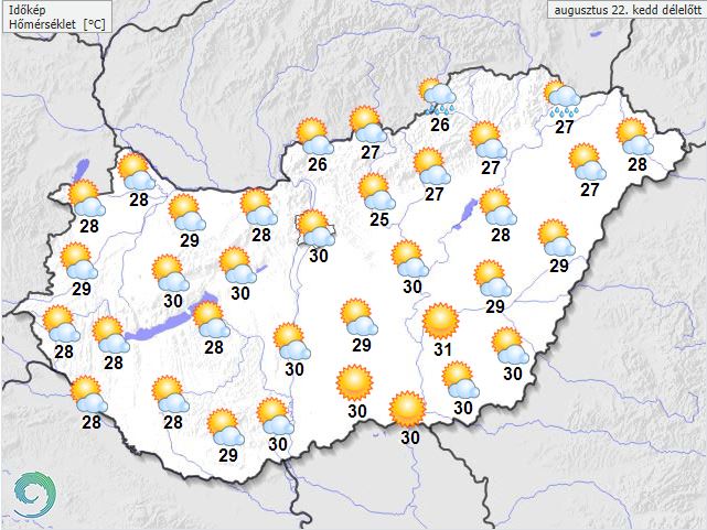 Kedden napos idő várható kevés gomoly- illetve fátyolfelhővel. Csapadékra az ország döntő részén nem kell számítani, de az északkeleti megyékben egy-egy futó zápor, zivatar előfordulhat. A légmozgás többnyire gyenge vagy mérsékelt marad – írta az Országos Meteorológiai Szolgálat.