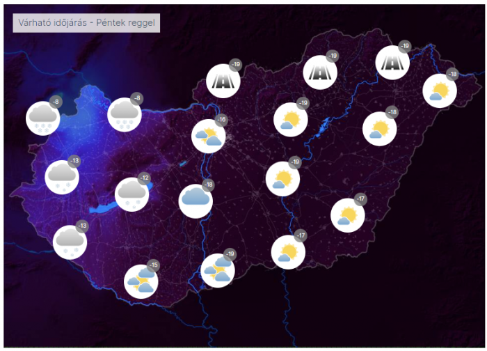 Nem lesz jelentős a légmozgás. Fagyos időben lesz részünk, ugyanis reggelre -8 fok köré csökken a hőmérséklet. Napközben is hideg lesz, kora délután csak -3 fok körül alakul a legmagasabb hőmérséklet.
