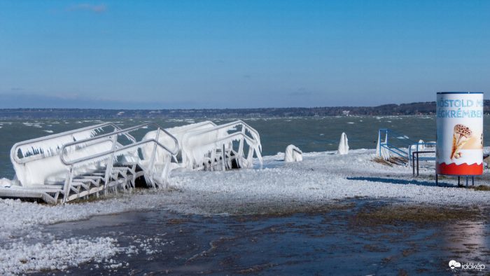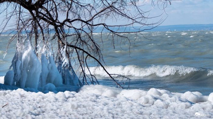 A hideg, szeles időben igazi jeges csodák képződtek a magyar tenger partján: