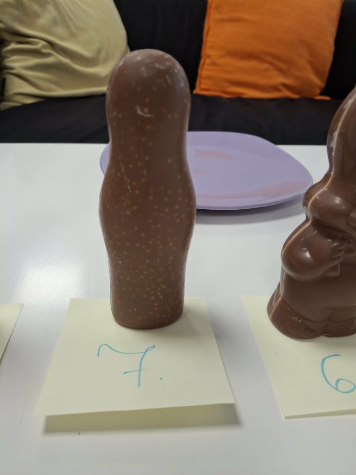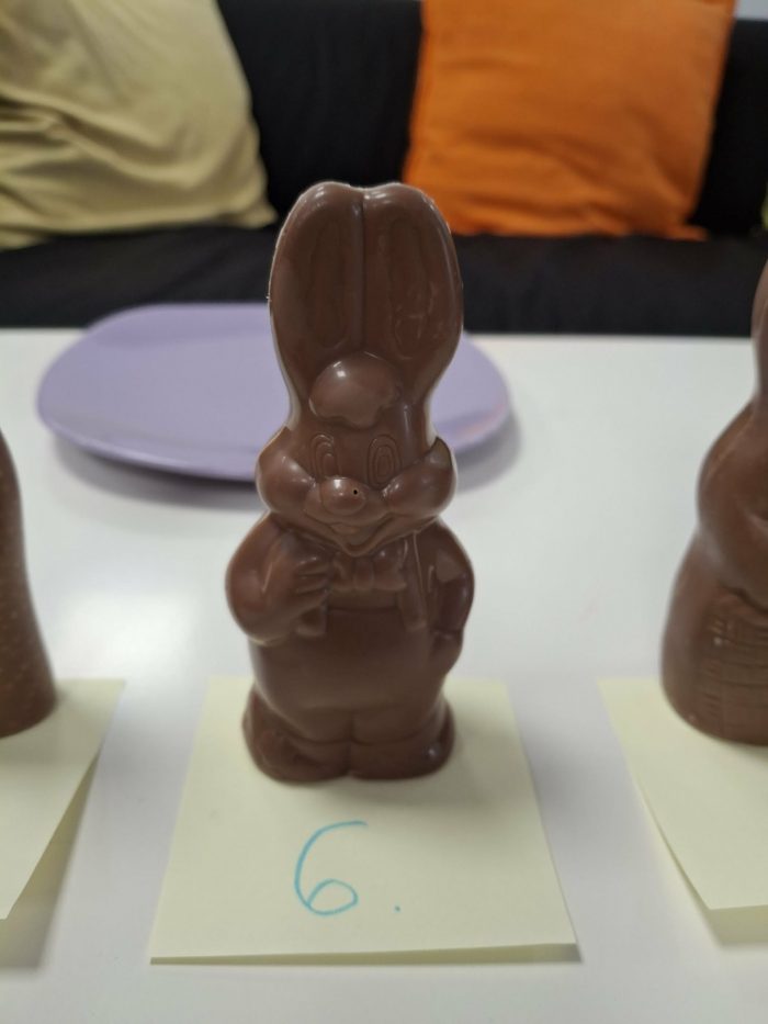 A teszt végére azonban összeállt a rangsor. A legtöbb voksot a hatos sorszámú nyuszi kapta, amely kívül tejcsokoládéval, belül pedig fehér réteggel készült. Ez a kombináció bizonyult a legmeggyőzőbbnek: krémes, édes íz és roppanós állag párosult benne.