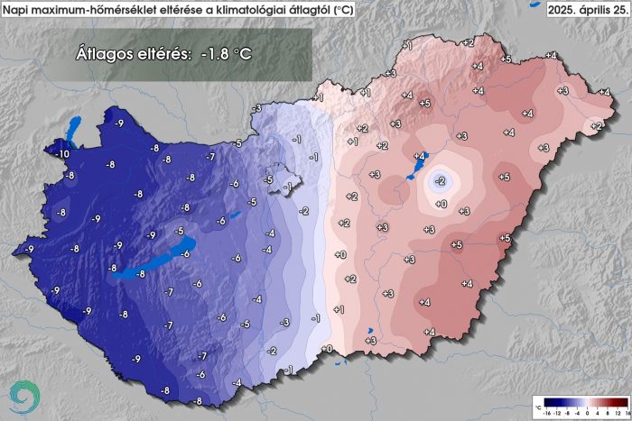 A nyugati országrészben átlagosan 8-9 Celsius-fokkal volt hűvösebb az ilyenkor szokásosnál, míg a keleti országrészben 4-5 fokkal volt melegebb.