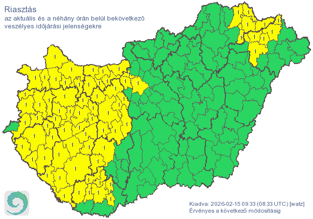 Erős széllökések miatt adtak ki elsőfokú, citromsárga riasztást vasárnap reggel a Dunántúl szinte teljes területére – így a Győri járásra is – írja a HungaroMet.