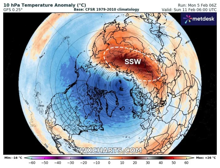 Úgy tűnik a jövő héten jelentősen legyengül a zonális szél, ezzel együtt Szibéria fölött hirtelen sztratoszférikus melegedés körvonalazódik.
