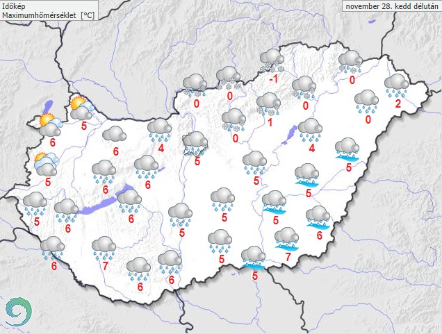 Kedden jobbára borult időre számíthatunk sokfelé csapadékkal, egyes részeken kiadós mennyiség is hullhat. Döntőrészt eső várható, de kiemelten az Északi-középhegység, Észak-Alföld térségében havas eső, hó valószínű, helyenként megmaradó hóréteg is kialakulhat.