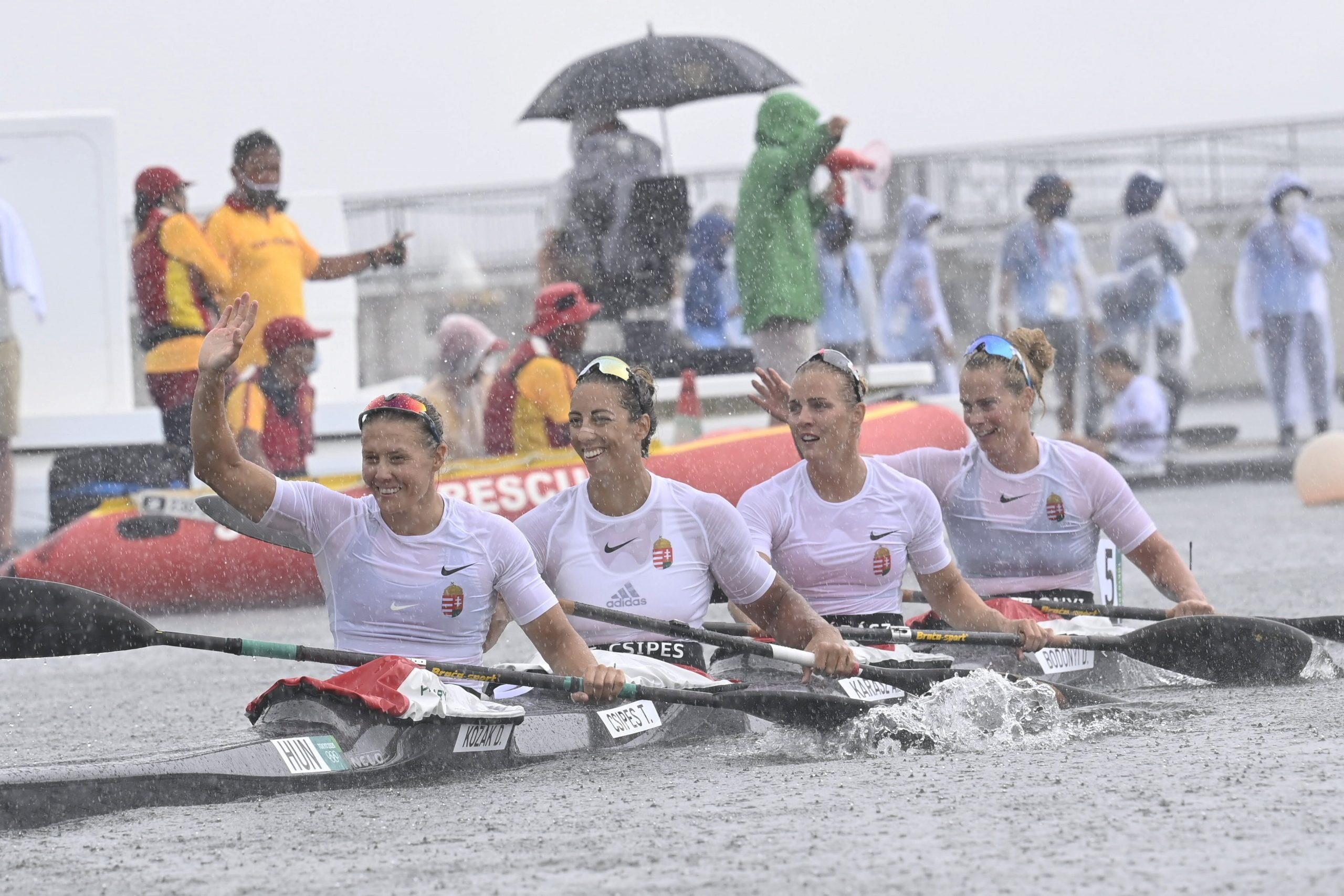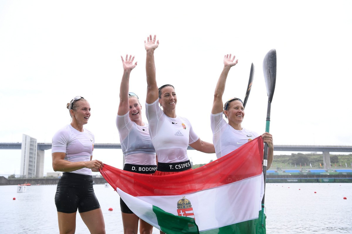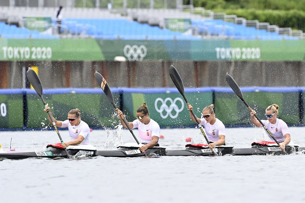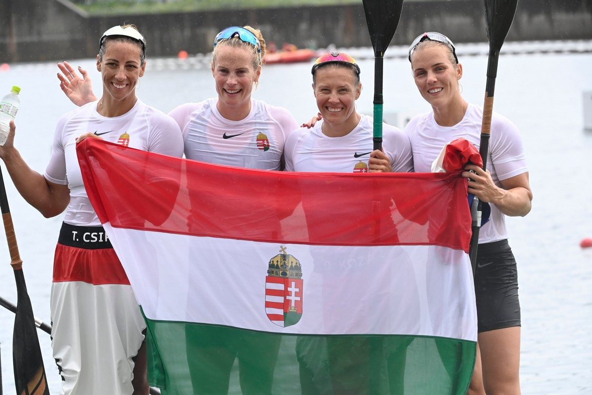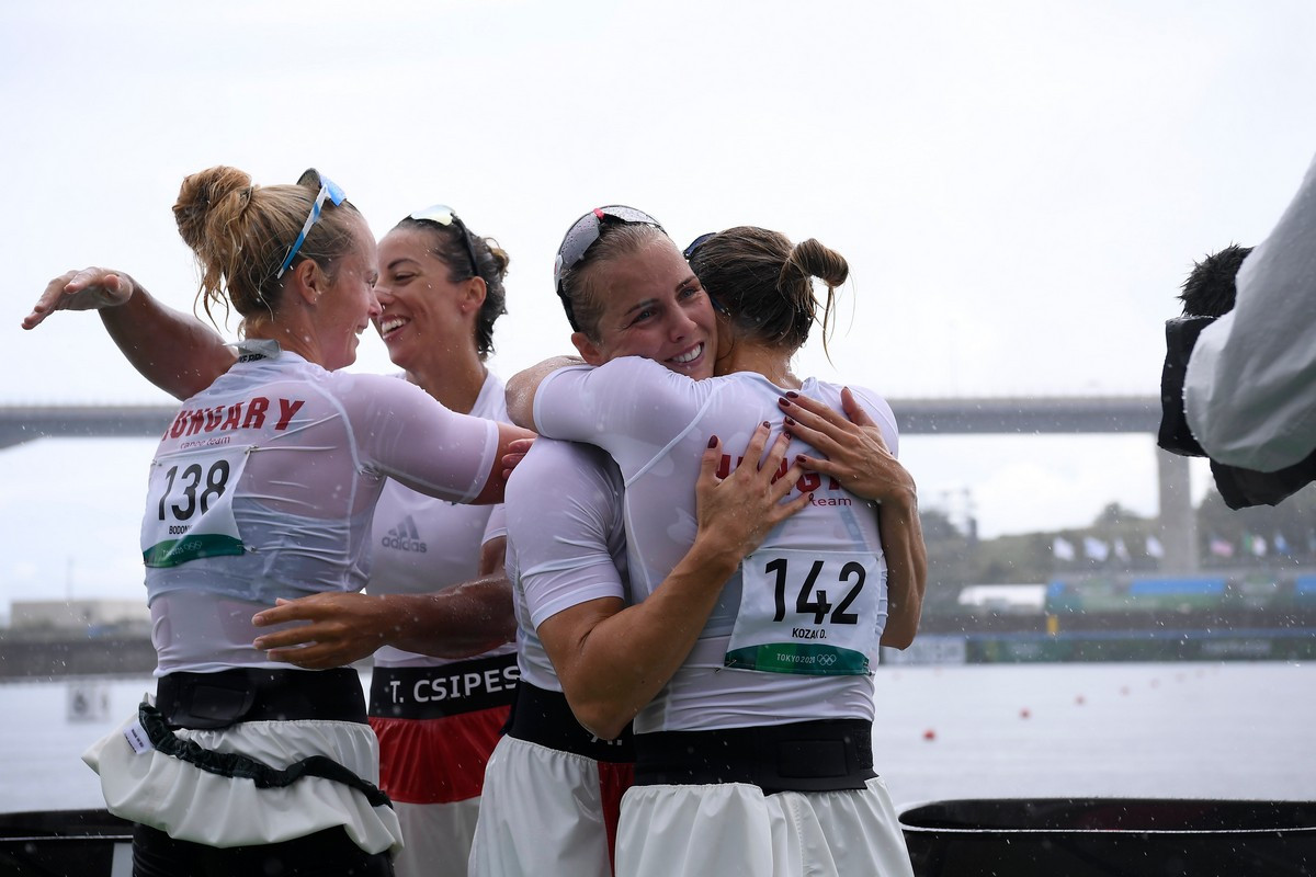 Lecsapott a vihar a női négyes kajakdöntőre, de ez semmit nem hátráltatott a női négyesünkön! A magyar női kajaknégyes - Kozák Danuta, Csipes Tamara, Kárász Anna, Bodonyi Dóra összeállításban - címét megvédve aranyérmet nyert szombaton 500 méteren a tokiói olimpián.